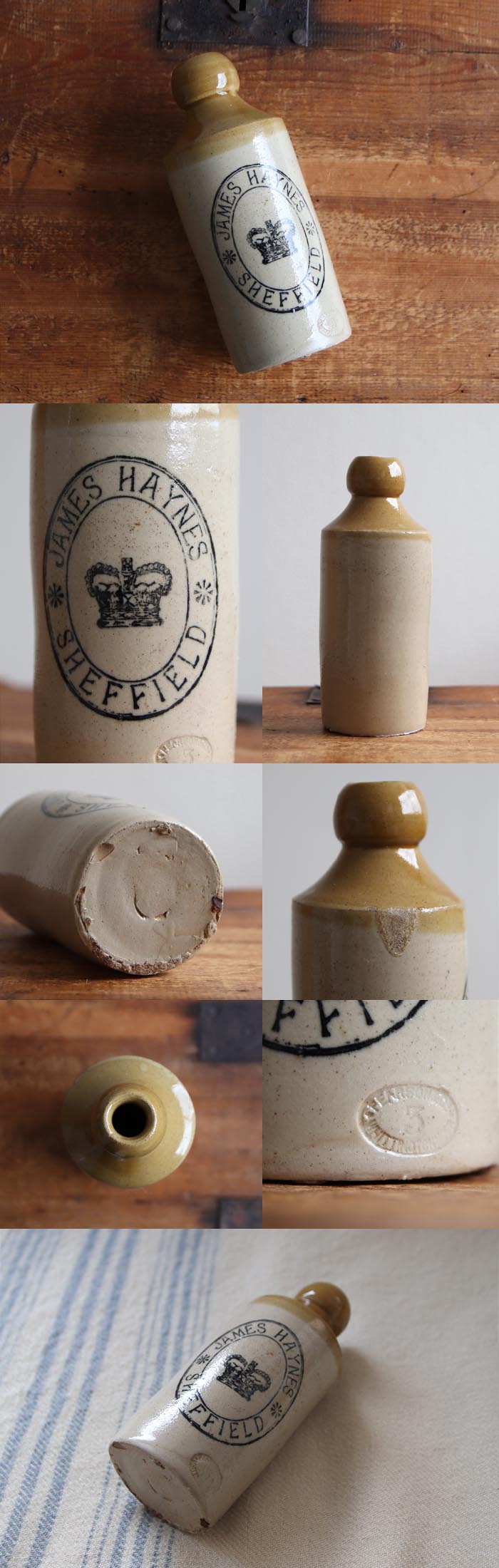イギリスから直輸入した陶器製ビア ボトル。フロントデザインや刻印が素敵!
