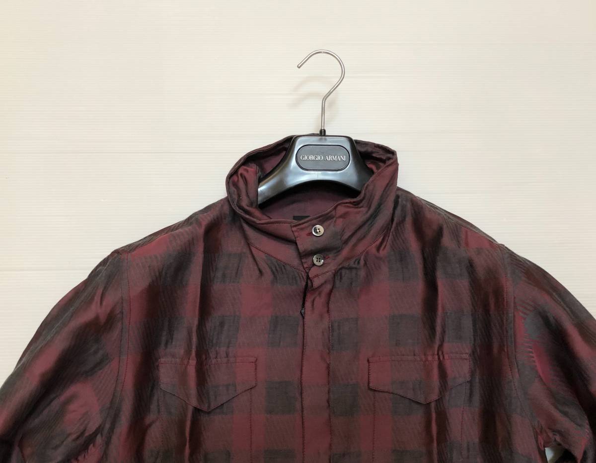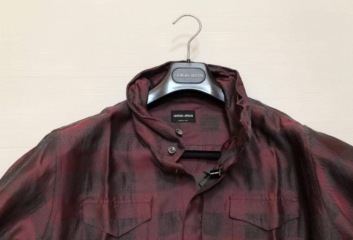 ジョルジオ アルマーニの形状記憶ワイヤー搭載スタンドカラー シャツブルゾンになります。春、夏、秋のロングシーズン着用可。ON・OFF兼用でデイリーに使える優れ物。Tシャツの上から羽織って頂くにはもってこいの逸品です。とても贅沢なブルゾンに仕上がっています。ぜひこの機会にいかがでしょうか。