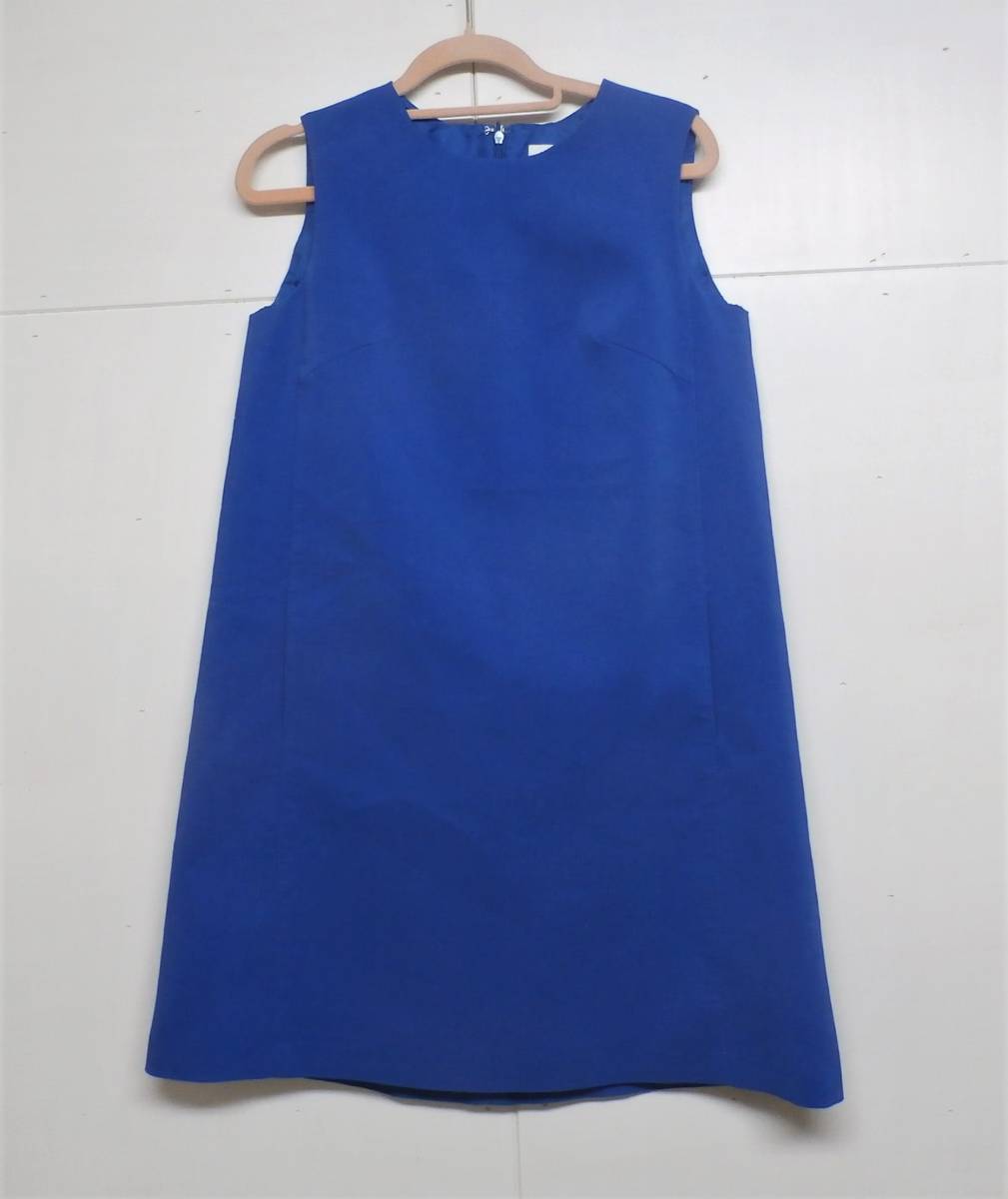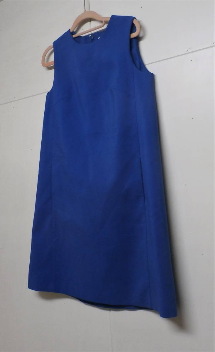 [16951]  THREE SQUARE  / サイズ38 /  裏地付き  / 青色ワンピース / 日本製