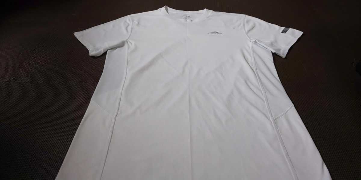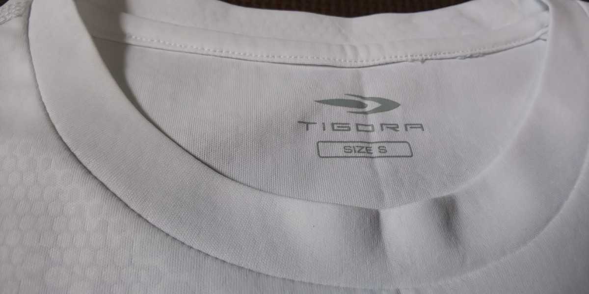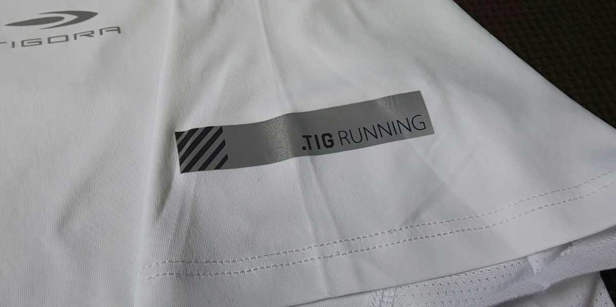 新品TIGORA白柄入り、ロゴシルバー半袖ストレッチトップス