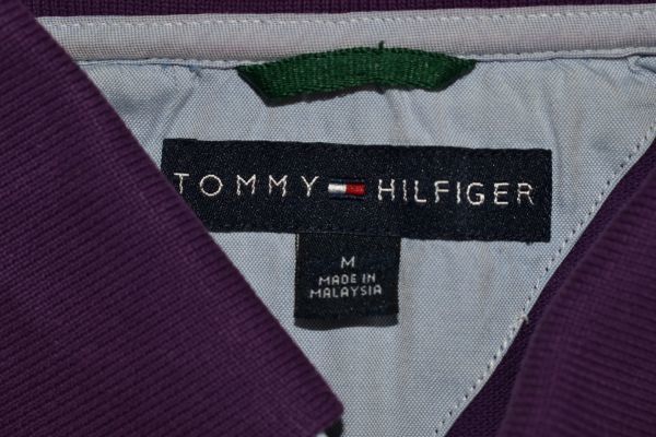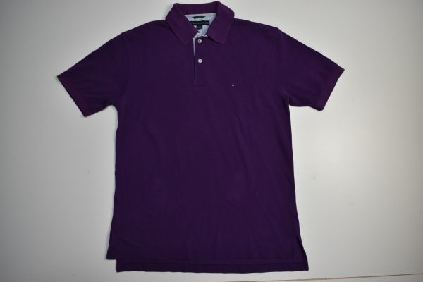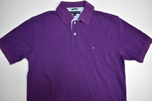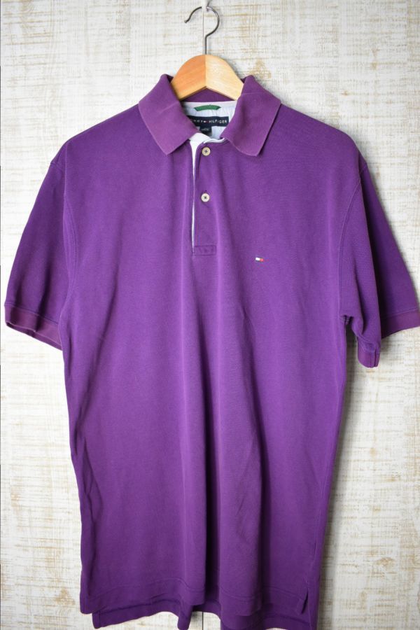 ●US USED TOMMY HILFIGER トミーヒルフィガー ポロシャツ ロゴ刺繍 紫パープル【M】
