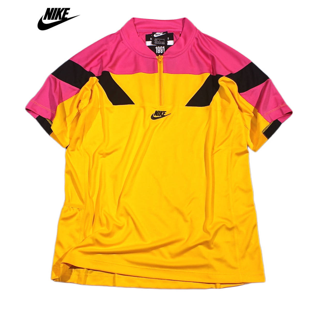 【新品】ナイキ ハーフジップ ニット 半袖 Tシャツ【739:黄】M ピスト サイクリング ジャージ トレーニング ジム NIKE