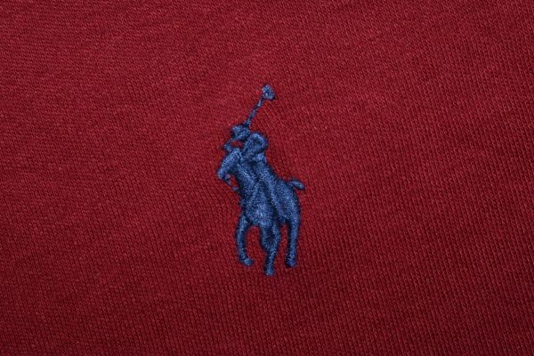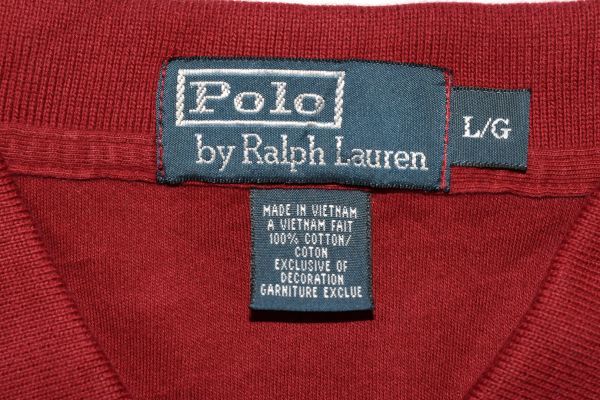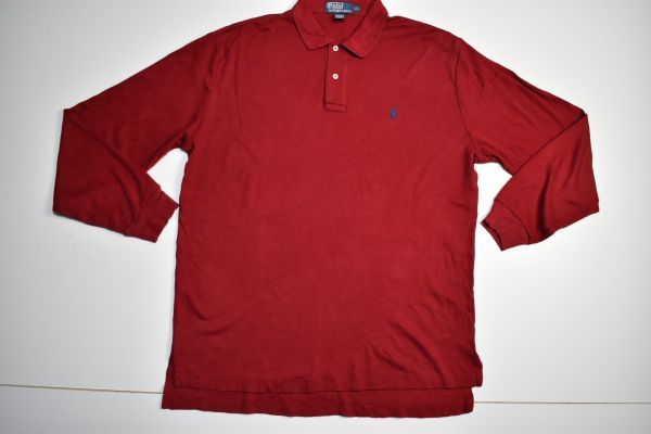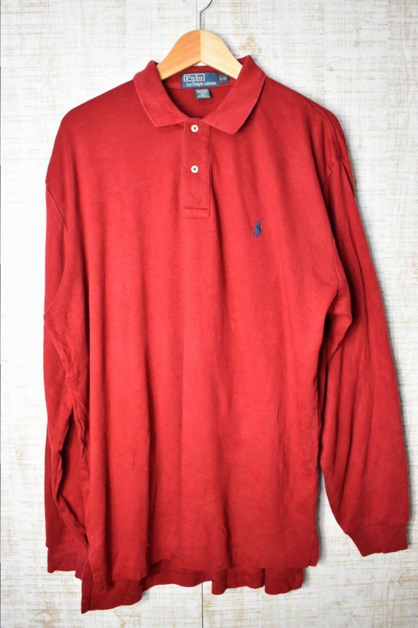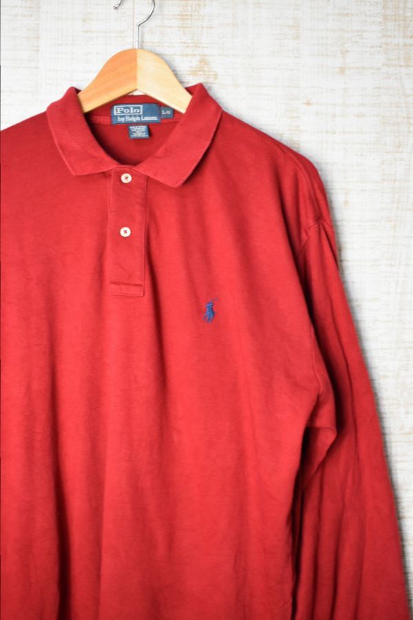 ●US USED POLO Ralph Lauren ラルフローレン ポロシャツ 長袖 ロング ポニーロゴ刺繍 レッド赤【L】
