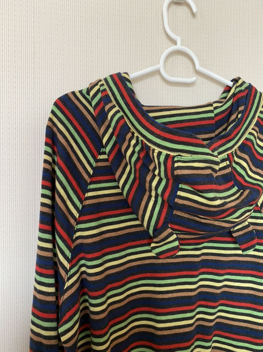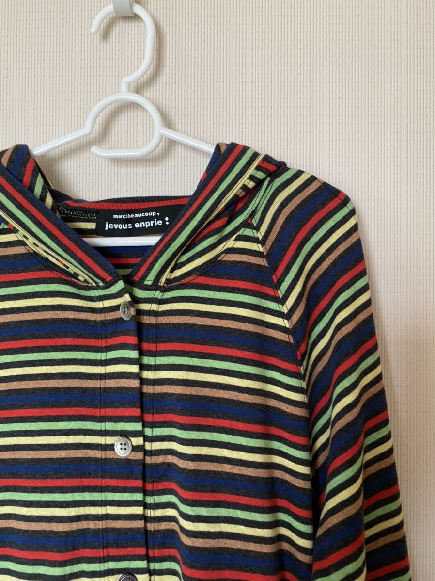 美品◆メルシーボークー je vous enprie! マルチボーダーフーデッドカーディガン◆くま耳