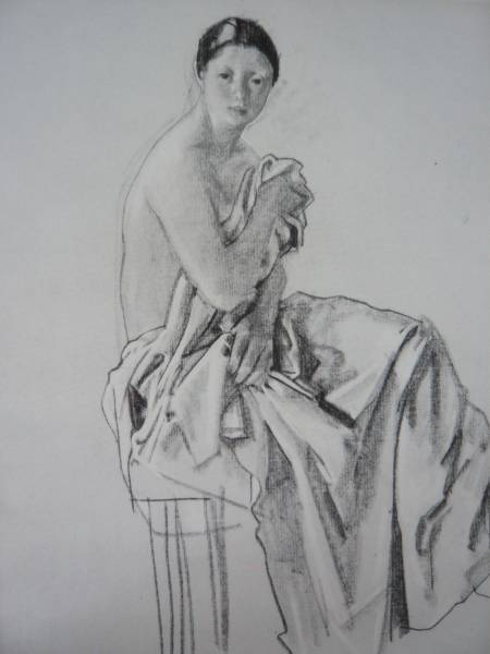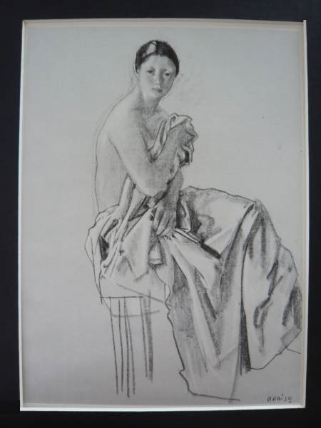 小磯良平 「モデルの女」 画集より。レゾネの一部作品を額装したものです。コンディション良好。絵画サイズ21cm×15,5cm、デスク周りや、インテリアに適したサイズで、貴賓のある素晴らしい作品です。新品の額付きで、額のサイズは30,5cm×25cm 額枠は黒色、マット付、ガラス付の新品です。保存状態がよく、新品同様ではございますが、神経質なお客様のご入札はお控えください。≪高級額装希望のお客様は、別途額代金10000円です。新品、ガラス、マット付きで、作品に合った額でお届けいたします≫ ※規定額、高級額のどちらも、マットのサイズを合わせてからの発送となりますので、お振込み確認後、お届けまでに1日から一週間前後頂く場合がございます。