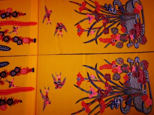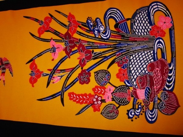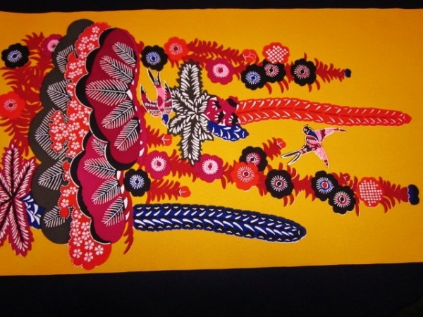 | 【京わぎれ】ポリエステル 琉球衣装(松打掛) 紅型 山吹色(濃赤み) 13m 少難品④ | ||||