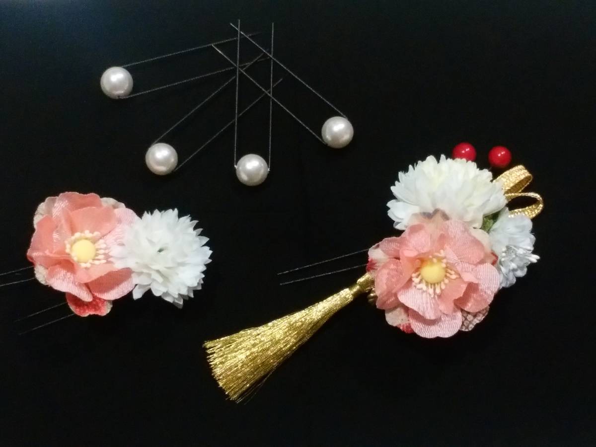 豪華花髪飾り 3個+パール調飾り4個セット 薄ピンク系 浴衣 振袖 成人式 卒業式 結婚式 舞台衣装などに