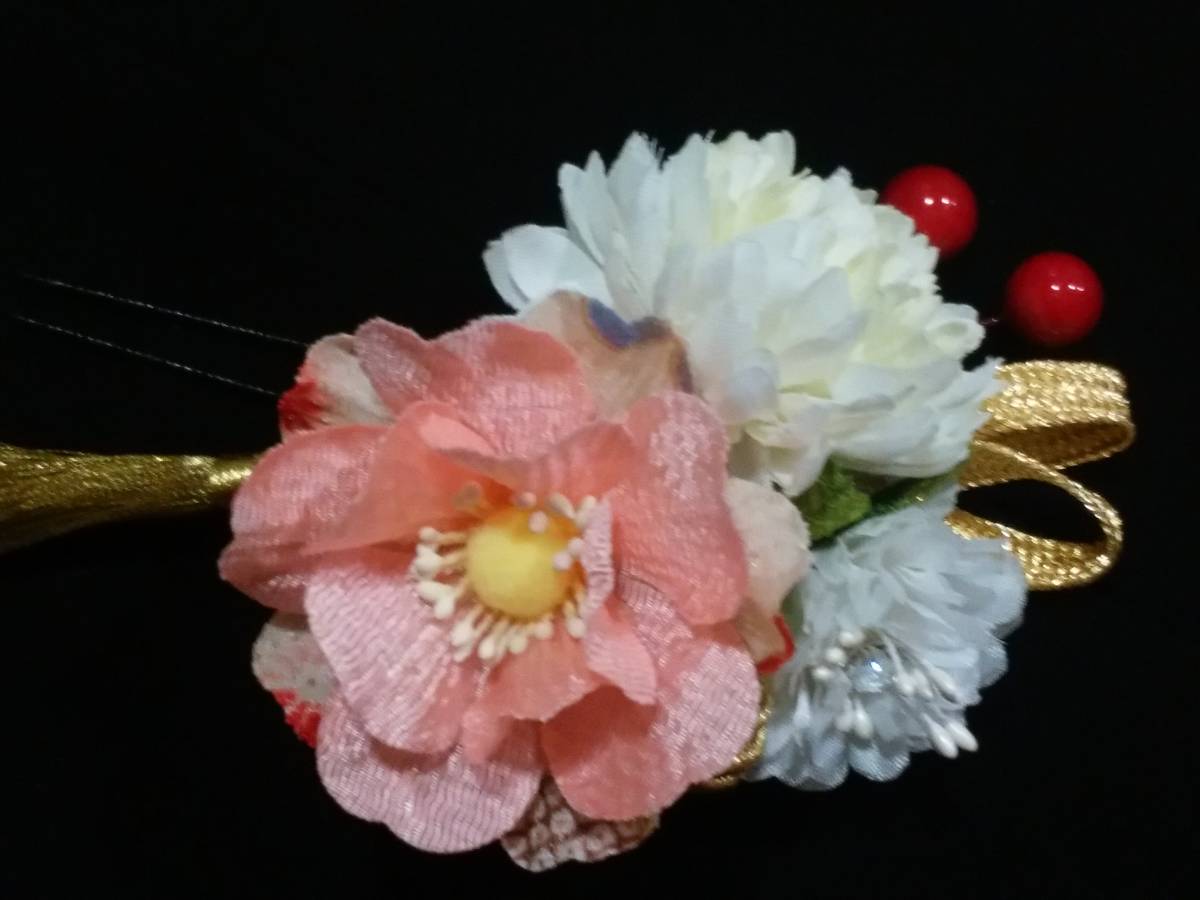 ③花飾り(薄ピンク、直径約4.5cm位、、Uピン)