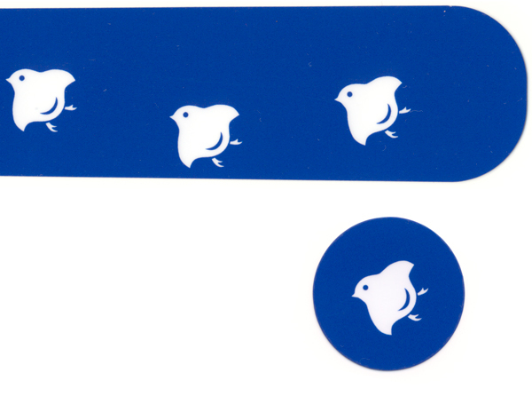防水仕様。紫外線にさらされる屋外用です。樹脂系合成紙にUVカットフィルムをコーティング。裏紙をはがして貼るシールタイプです。