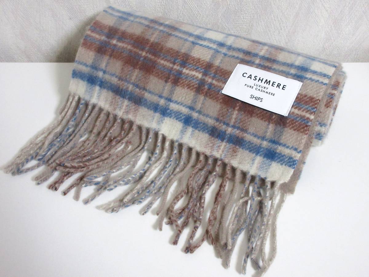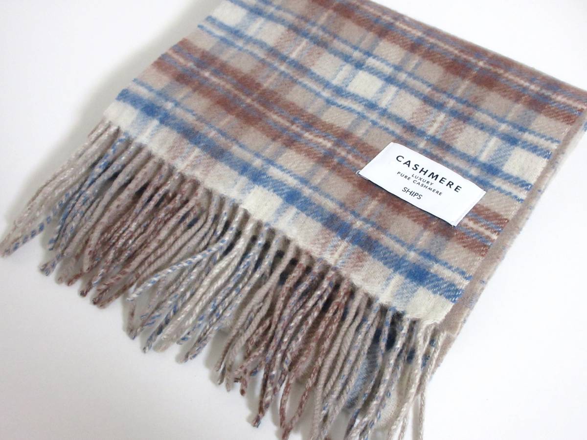シップス SHIPS カシミヤ チェック マフラー ベージュ 北755
