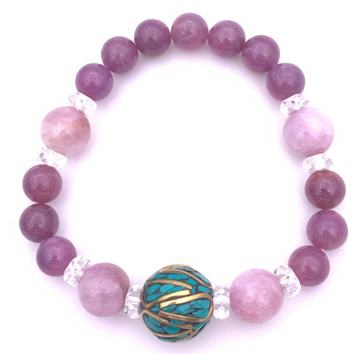 手作り!オリジナル!天然石ルビー&クンツァイト&ターコイズアンティーク風ビーズのブレスレット