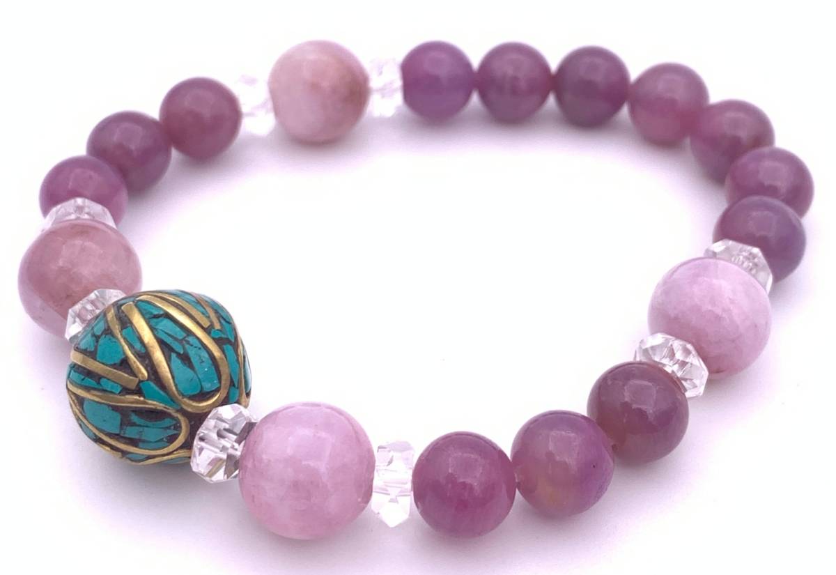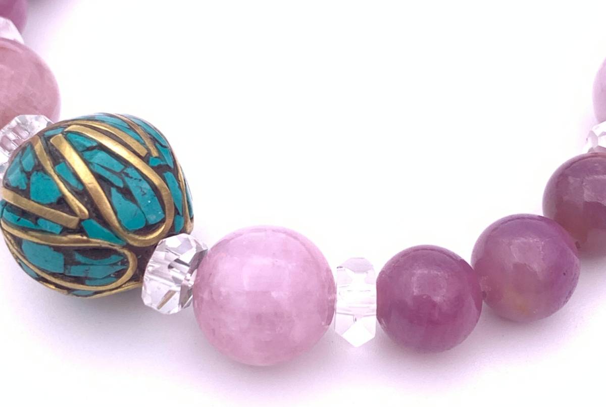天然石ルビー&クンツァイト&ターコイズアンティーク風ビーズのブレスレット