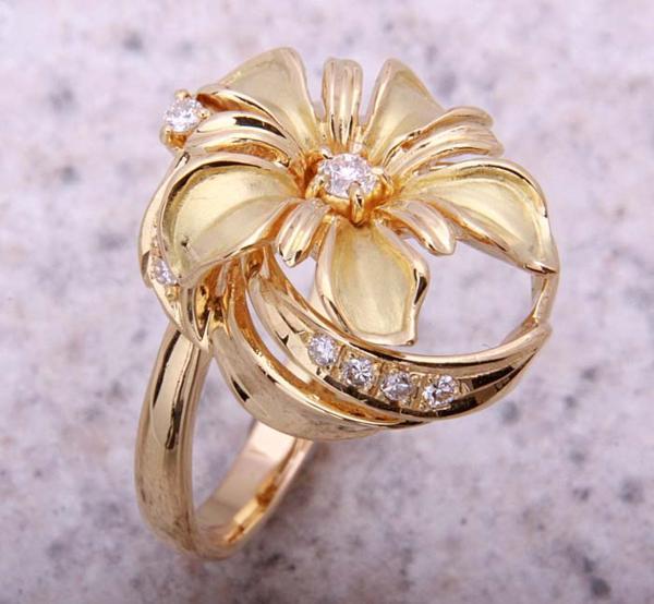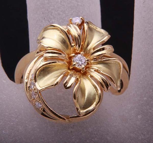 《質屋出品》k18★花モチーフのダイアリング★C-3585