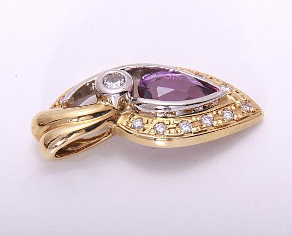 ペアシェイプのアメシストが中央に留められたペンダントトップです。