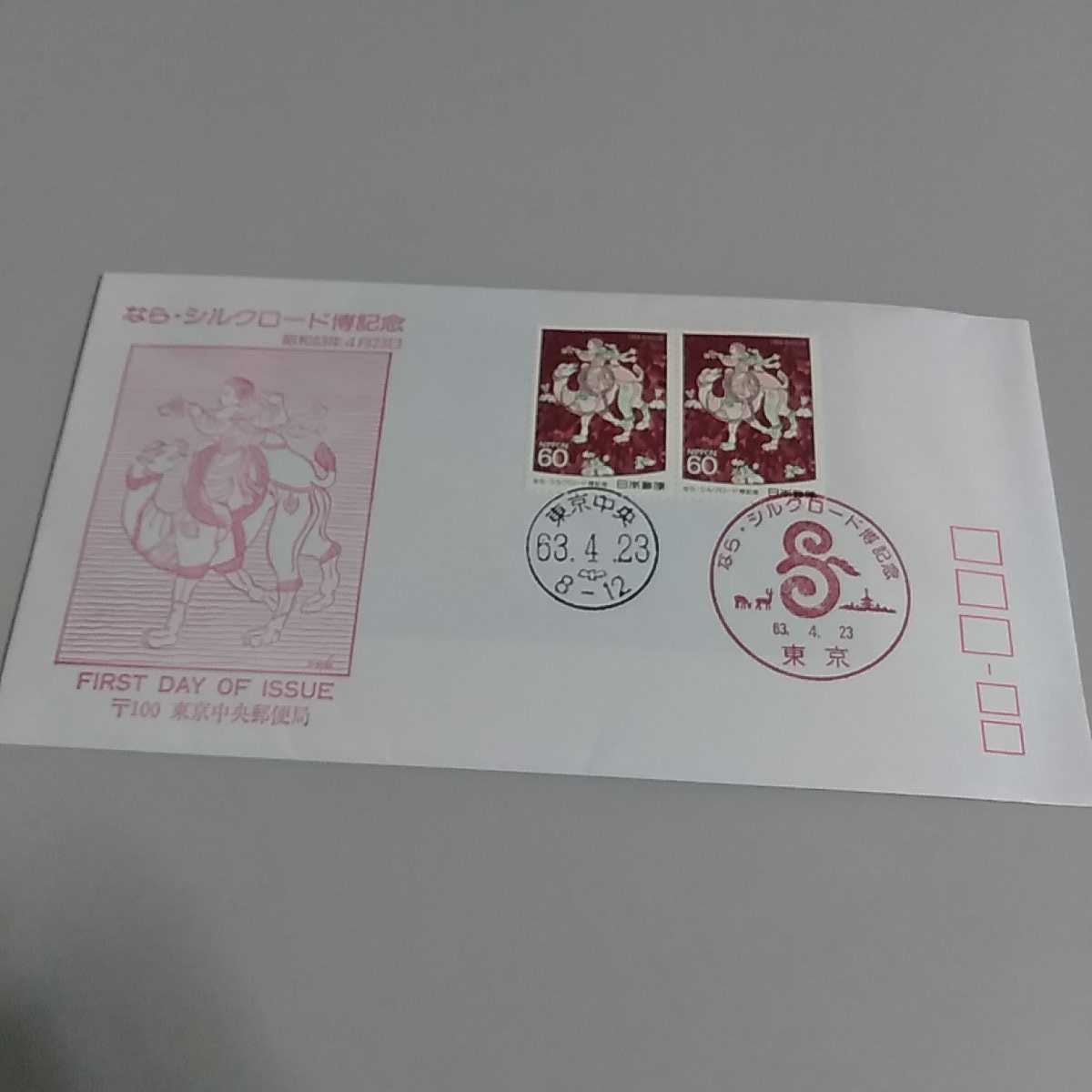 6 初日カバー First day Cover東京中央郵便局 ならシルクロード博記念 昭和63年4月23日
