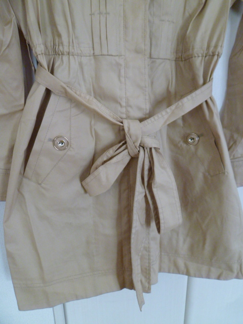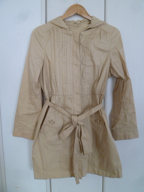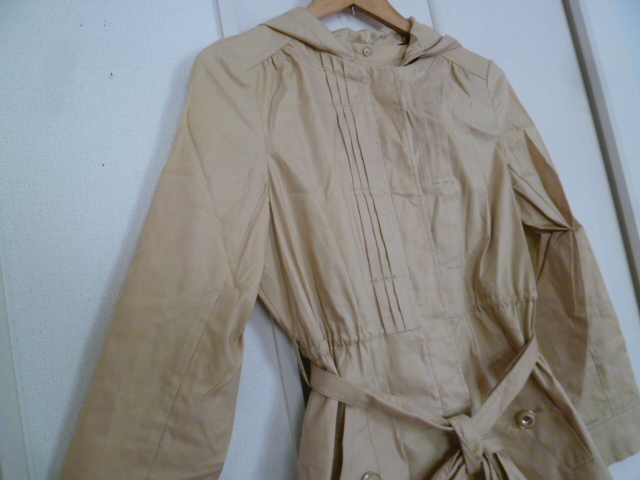 any sis/エニィシス○ベージュフード付き2WAYノーカラーコート2/ウエストリボンベルト付きオンワード樫山スプリングコート○③JK115