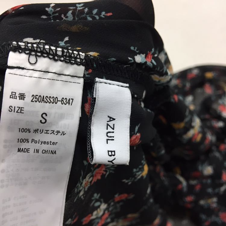 送料無料★美品★AZUL by moussy アズールバイマウジー★袖フレアトップス 花柄シャツ★レディースSサイズ#21106sj76