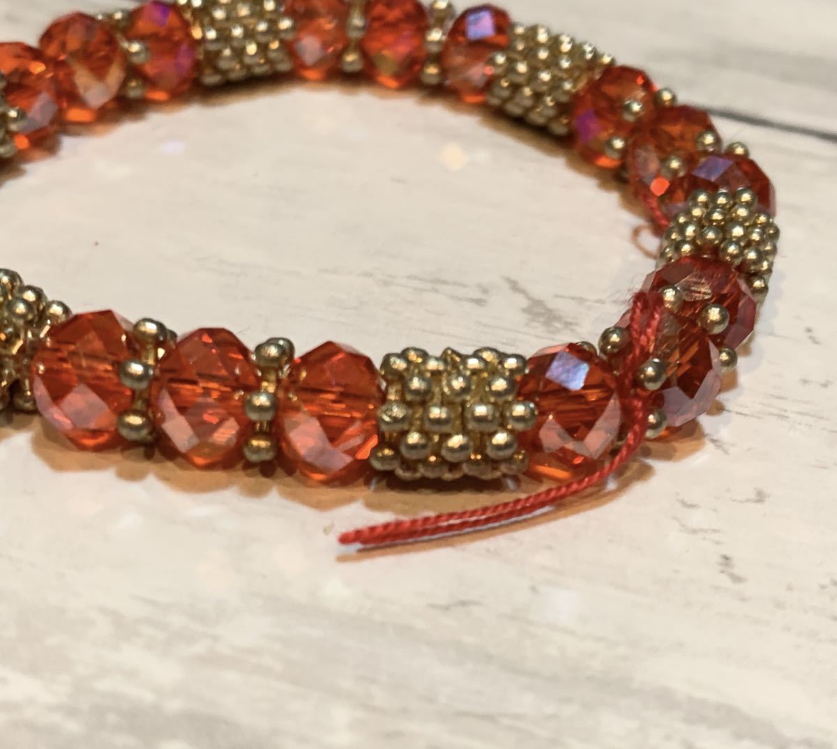 赤×ゴールドのアクリルビーズのブレスレットです。