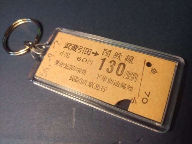 ◎【本物の硬券キーホルダー】武蔵引田→130円(国鉄・五日市線)#7722