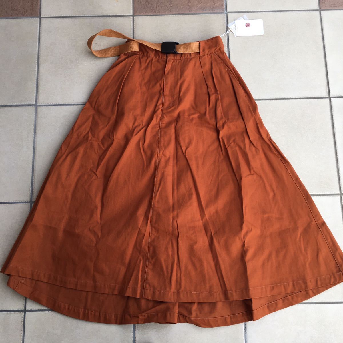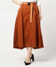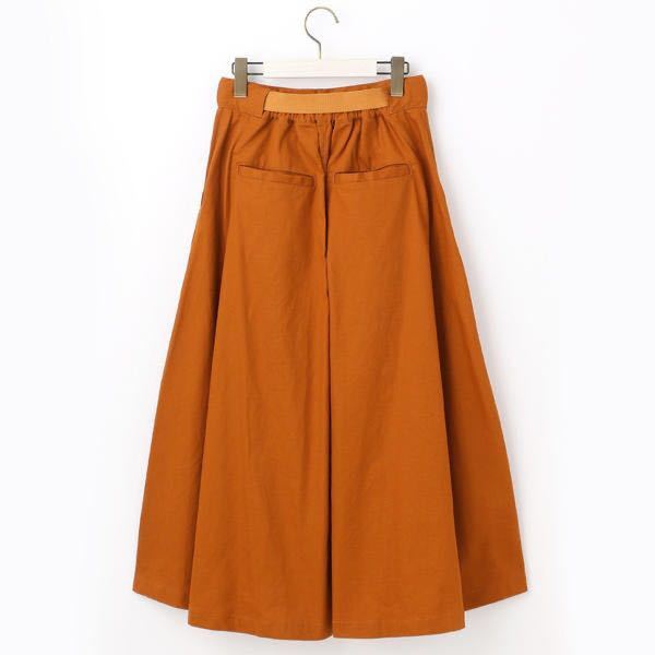 ふんわりと広がるミディアム丈のフレアスカート。スカートと同系色のベルトをセットにしてアクセントにしました。ヘムラインは後ろ下がりにして動きのあるフォルムに。コットンギャバ素材のナチュラルな風合いも魅力です。