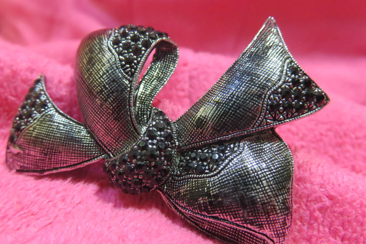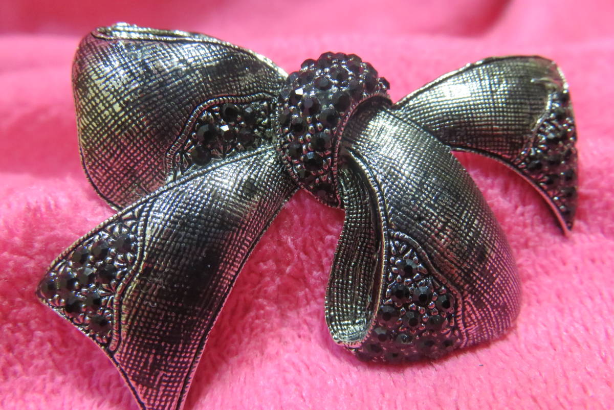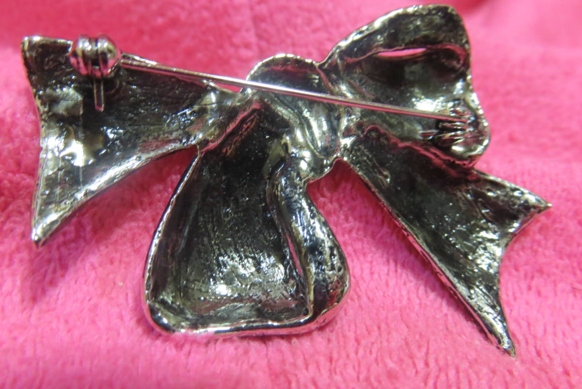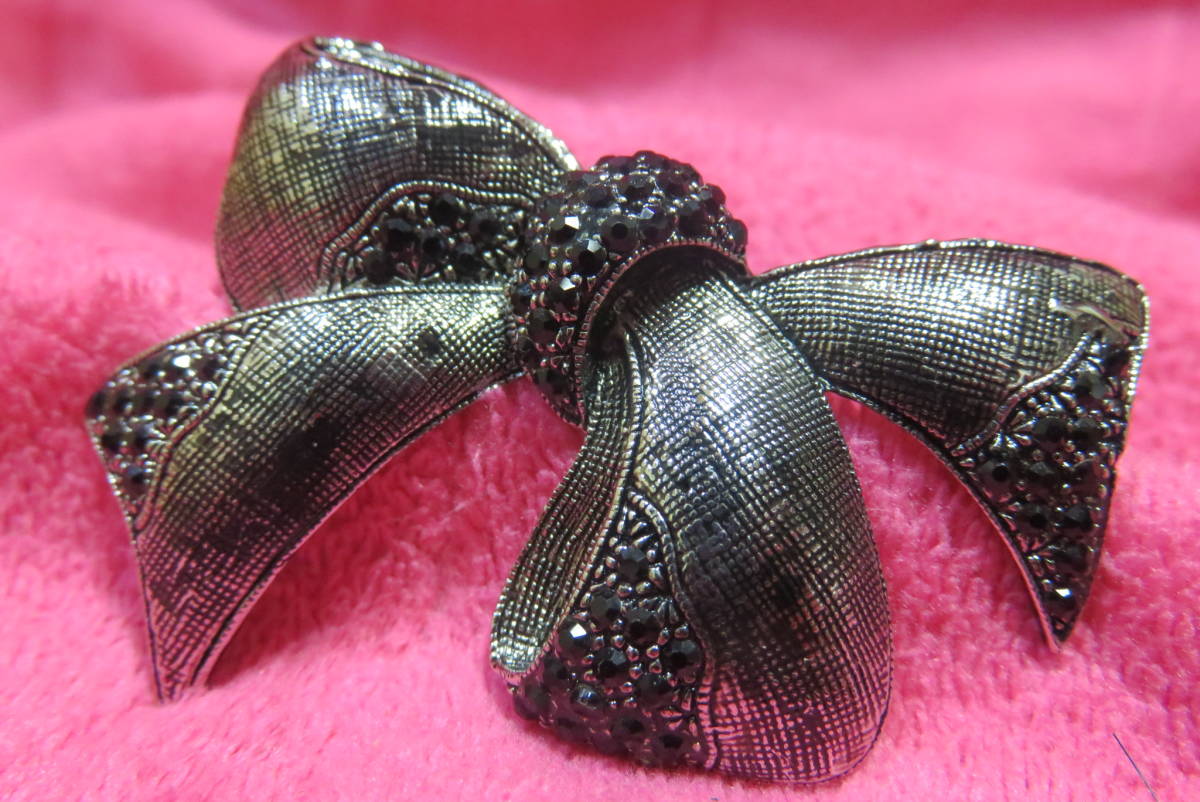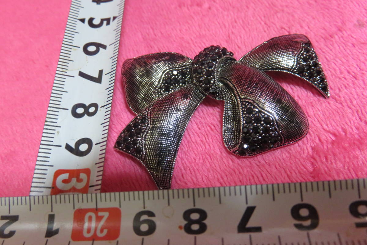 L4494  ブローチ  リボン  ラインストーン  アンティーク調