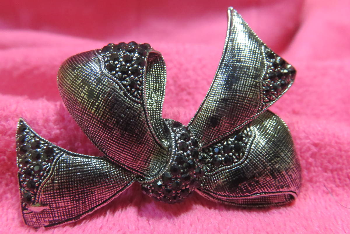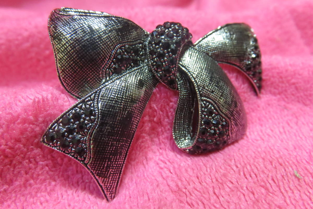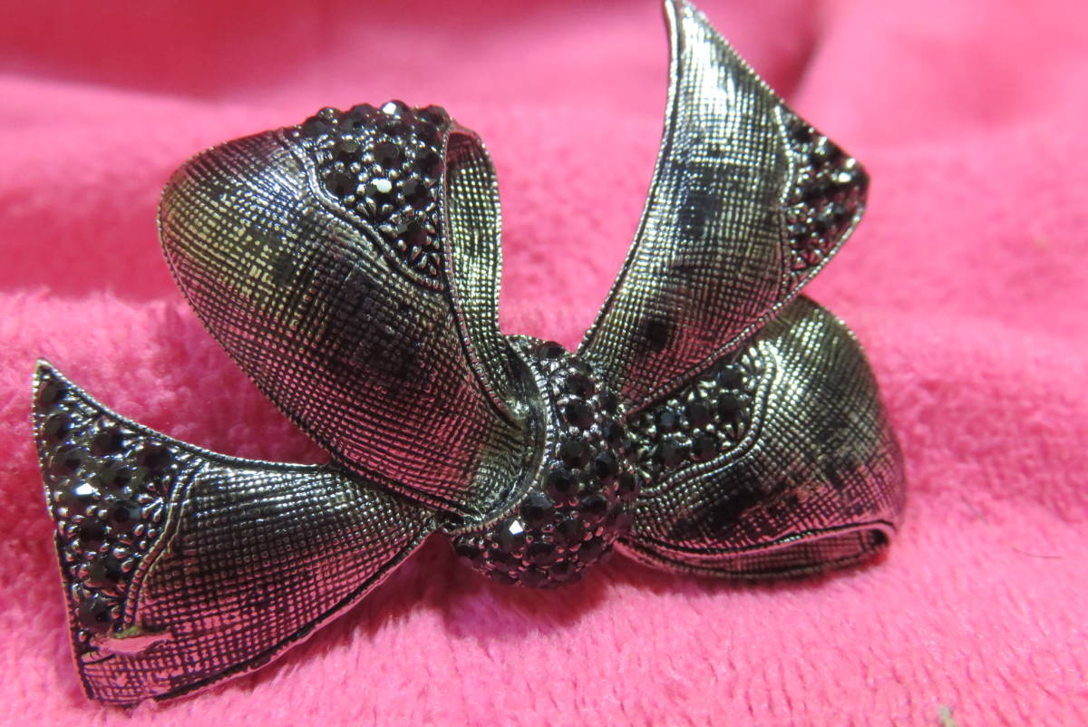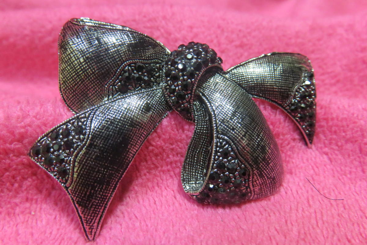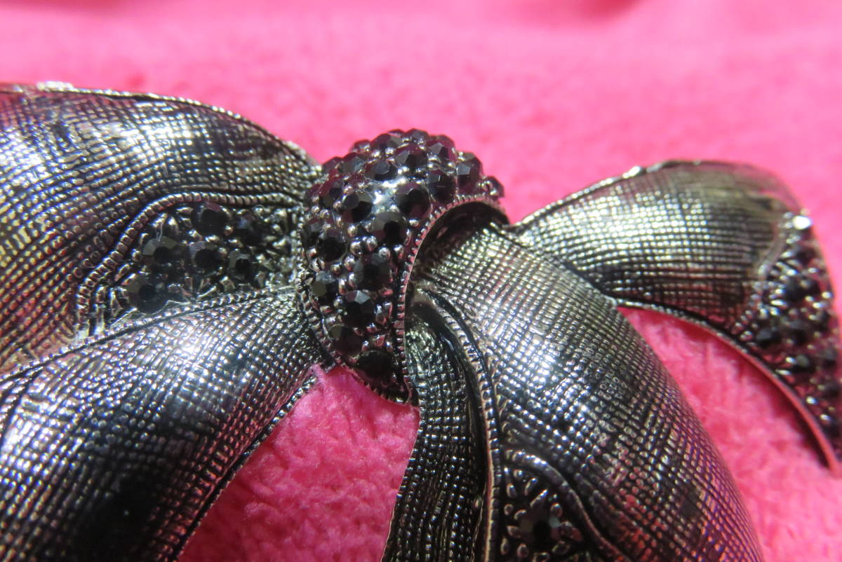 L4494  ブローチ  リボン  ラインストーン  アンティーク調