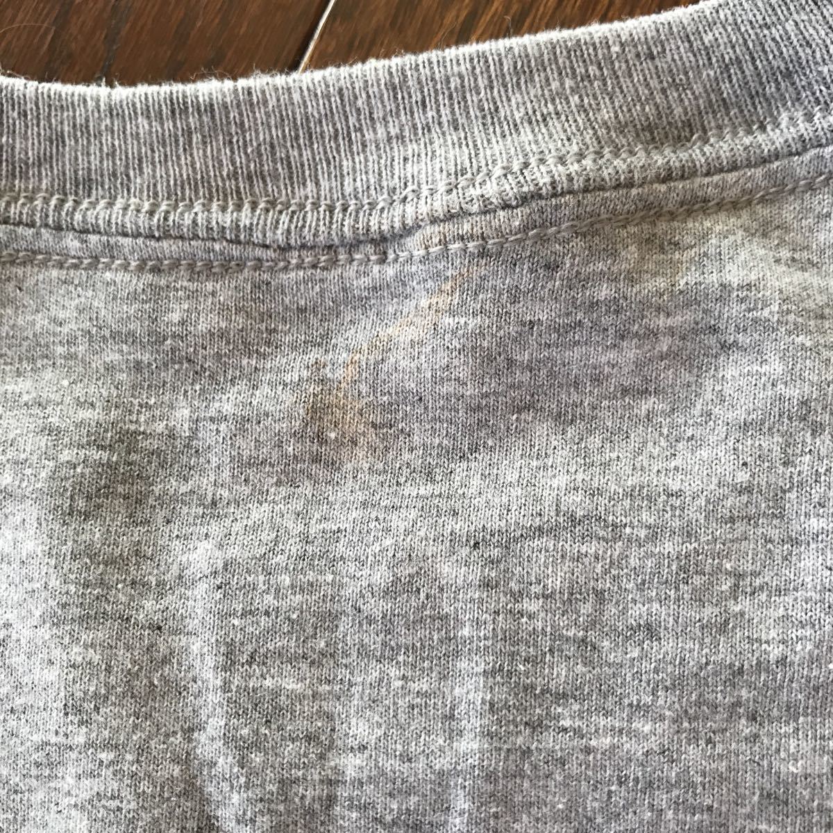素人採寸ですので、多少の誤差が生じる事をご了承下さい。着丈約67cm・肩幅約41.5cm・袖丈約18.5cm・身幅約44cmです。新品ではございませんが、古着にご理解ある方でしたら 問題ないレベルです。襟足部分に茶色のシミがございますので、神経質な方の入札はご遠慮下さい。確認はしているのですが、写真撮影時、シミ・汚れ・ほつれ・小穴等見落とす事がありますのでご理解下さい。個人出品ですのでノークレーム・ノーリターンで宜しくお願い致します。