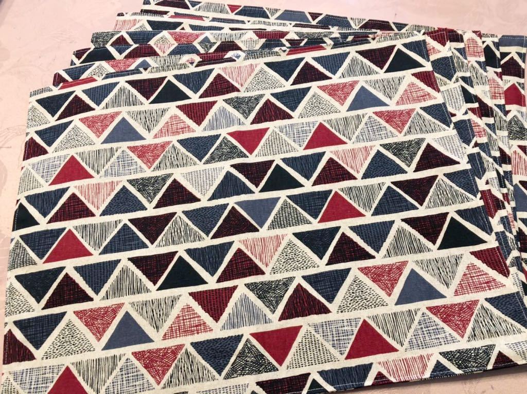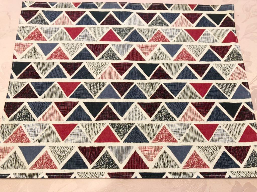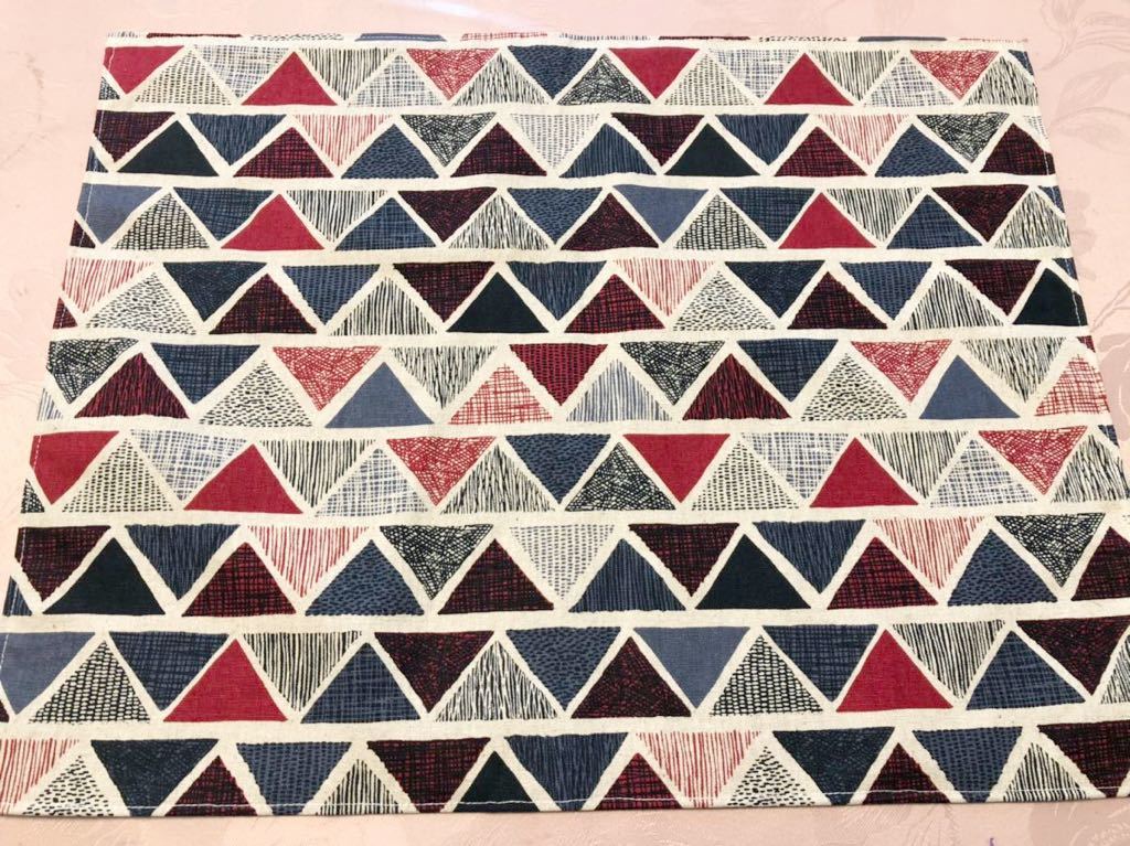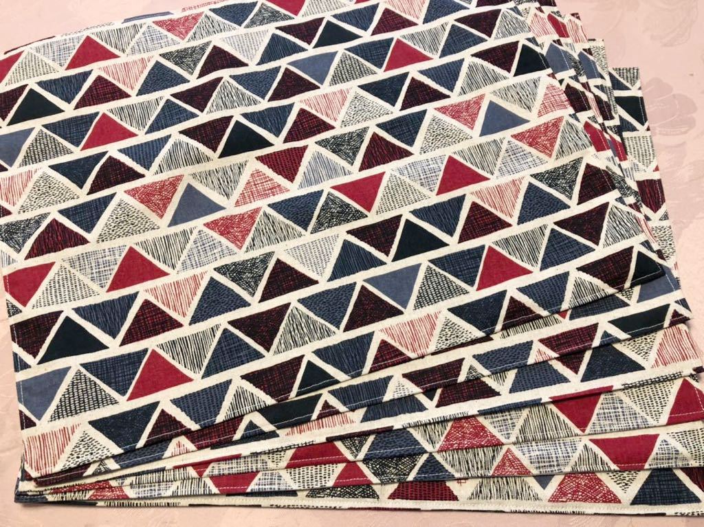 裏付ランチョンマット ハンドメイド  35x45 6枚組 三角柄 赤色