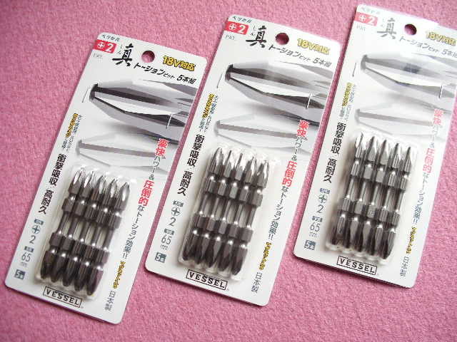 VESSEL 真トーション高耐久ビット RT5P2065 +2×65 5本パック×3= 15本セット 18V対応強度・衝撃吸収トーション効果ビット パワー伝達に優れたウルトラヘックス形状の高品質ビットです。 ネジ頭が見やすいテーパー形状・ねじれに強い設計 高級特殊鋼材・硬度HRC61 美しい光沢表面仕上げです。 ★新品★ 発送は、全国一律210円発送対応です。 |