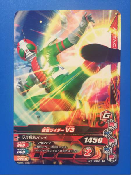 仮面ライダー、ガンバライジング・第G1弾からNo.052《仮面ライダーV3》の登場です。発送は、普通郵便を利用します。(特にご希望のない場合)おとりまとめも可能ですが、送料に変動する場合がございます。また、送料のご請求は、自宅での計量を基準にご請求させていただいておりますので、実際の金額と差異が出る場合もございます。予めご了承ください。他にも多数出品中です。まとめてこの機会にいかがでしょうか?ご質問お待ちしております。