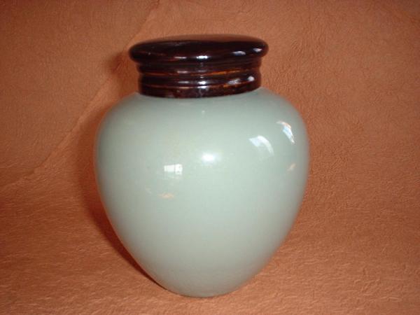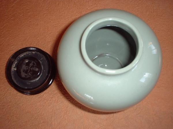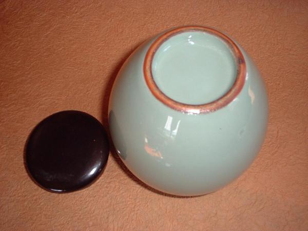 江戸後期頃の伊万里青磁です。大変出来の良い青磁です。茶壷で漆塗りの蓋が付いています。口径6×高13センチです。傷はありません。