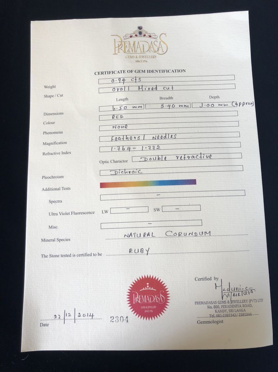数年前にSri Lanka スリランカの老舗宝石店Premadasas Gems & Jewellery (Pvt) Ltdにて購入したルビーのリングです。