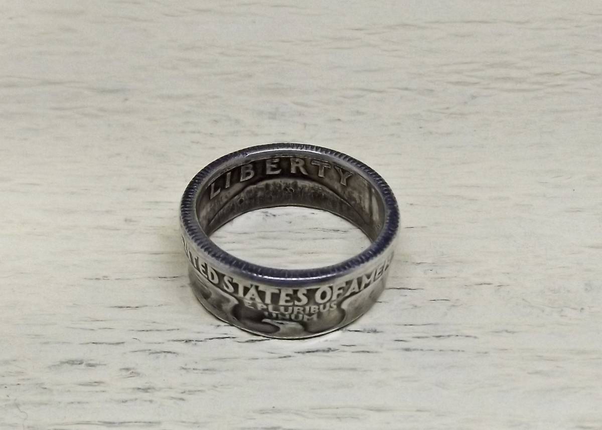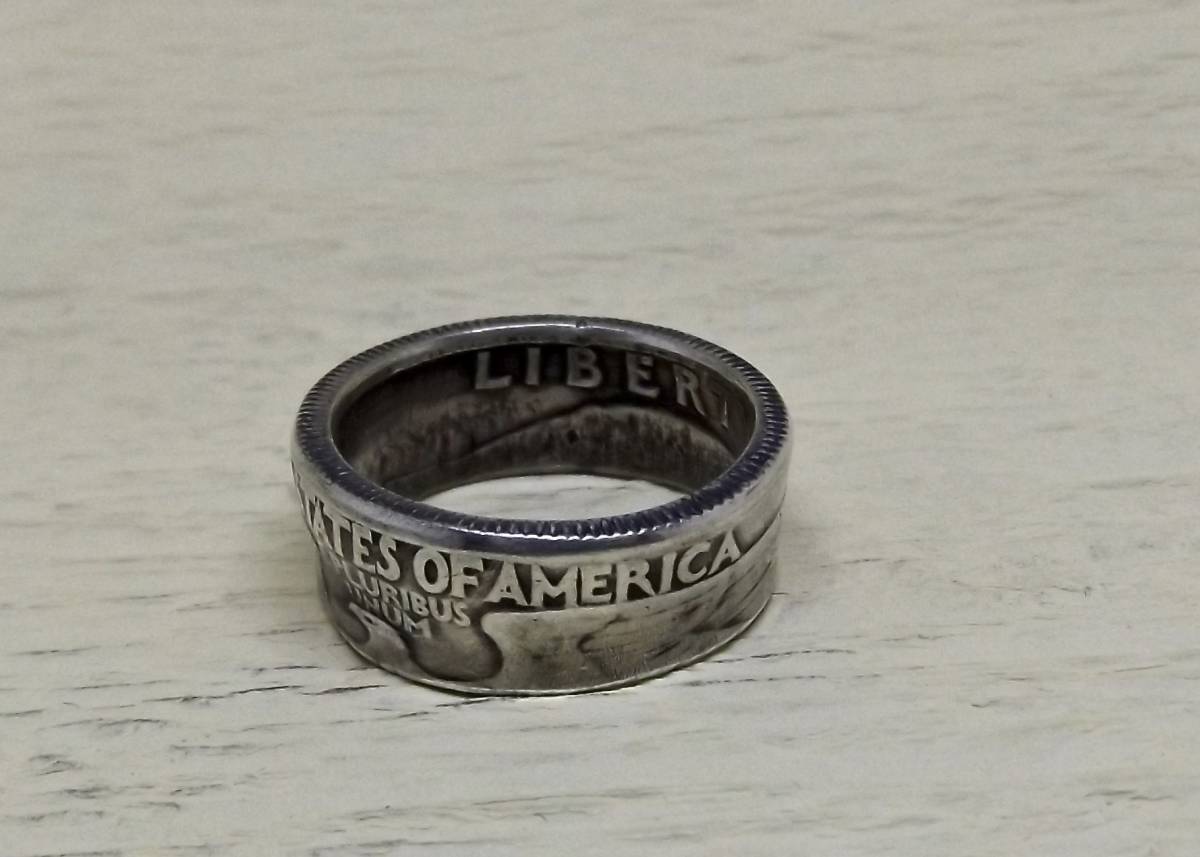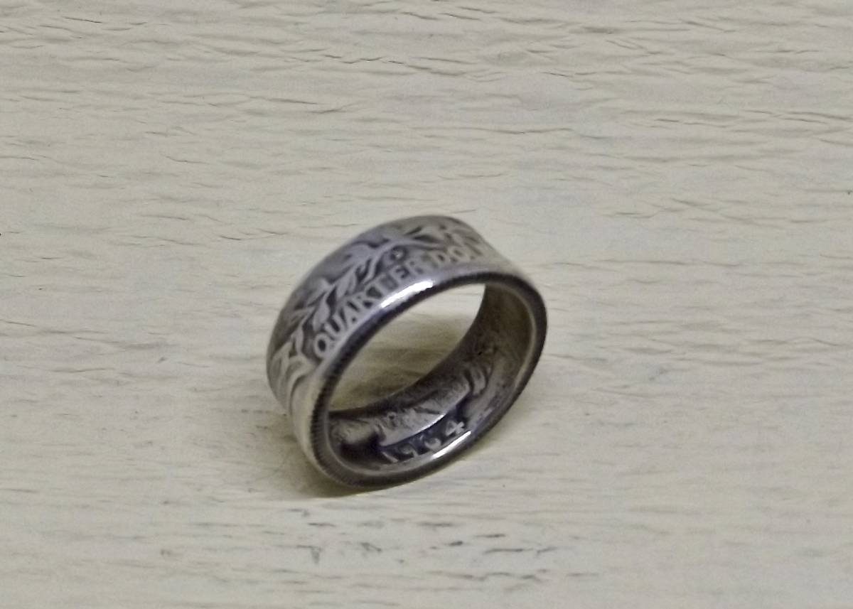 13号サイズ  新品 未使用  コインリング 25セント銀貨使用  (10544)送料無料 本物のコインで制作した手作り銀の指輪