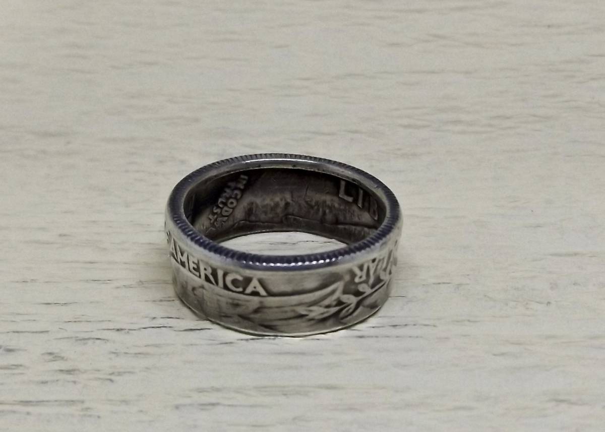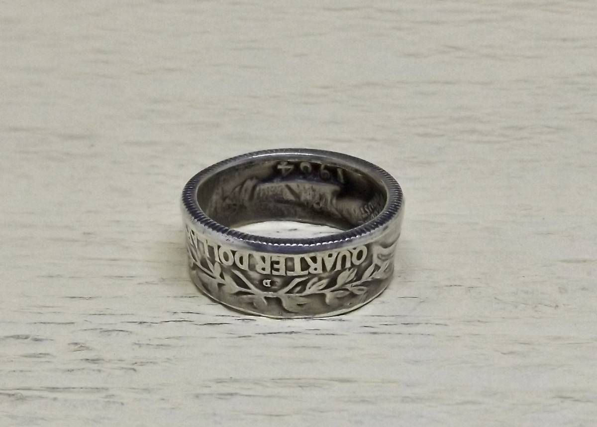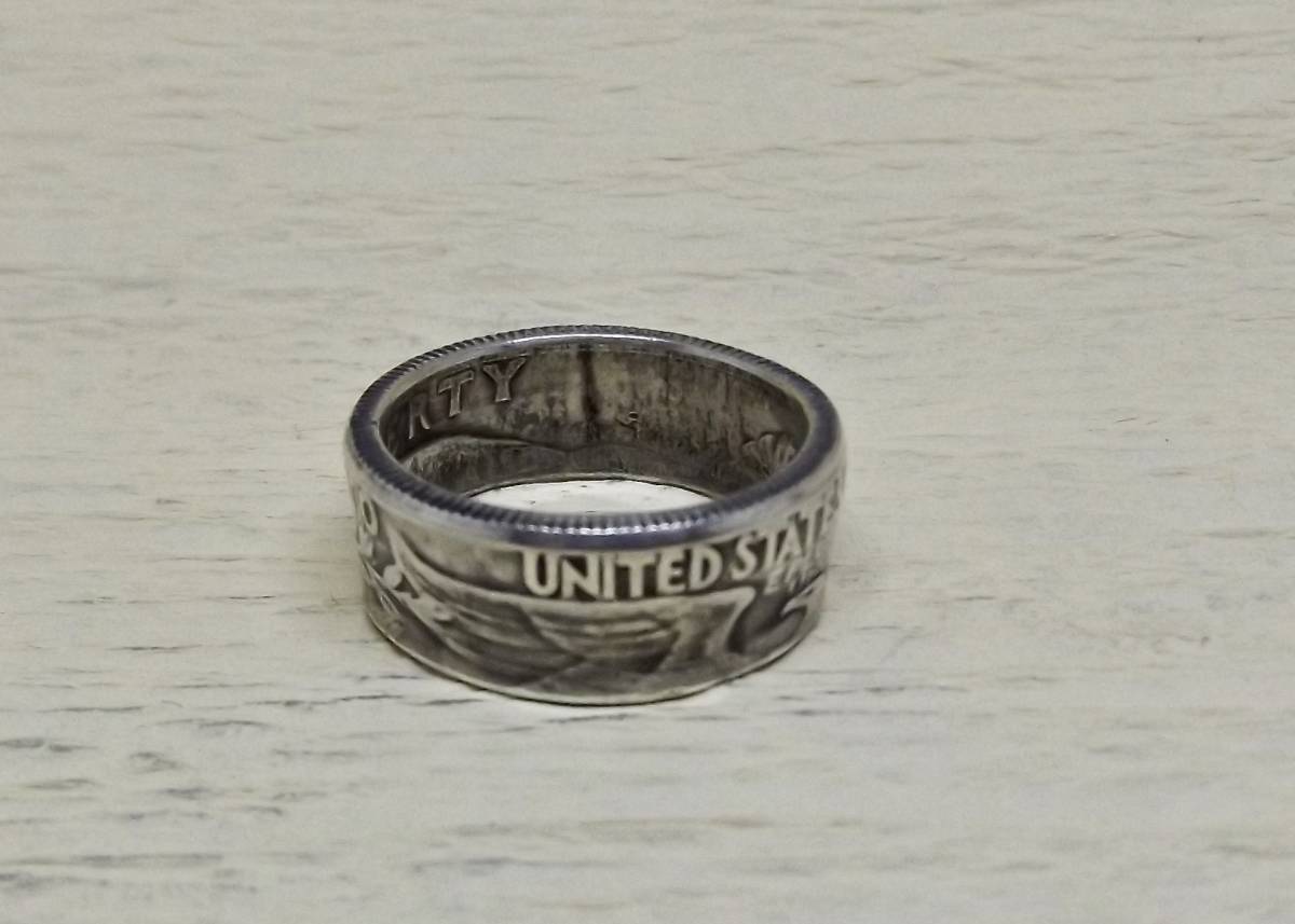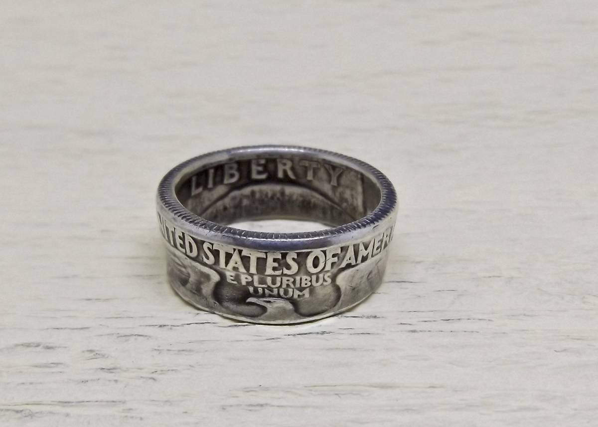 13号サイズ  新品 未使用  コインリング 25セント銀貨使用  (10544)送料無料 本物のコインで制作した手作り銀の指輪