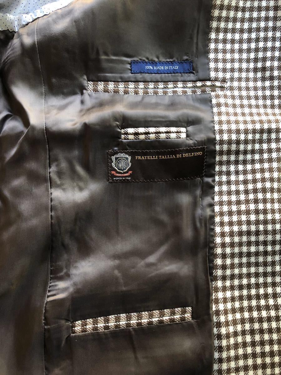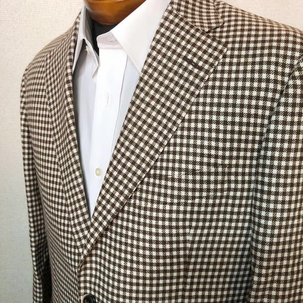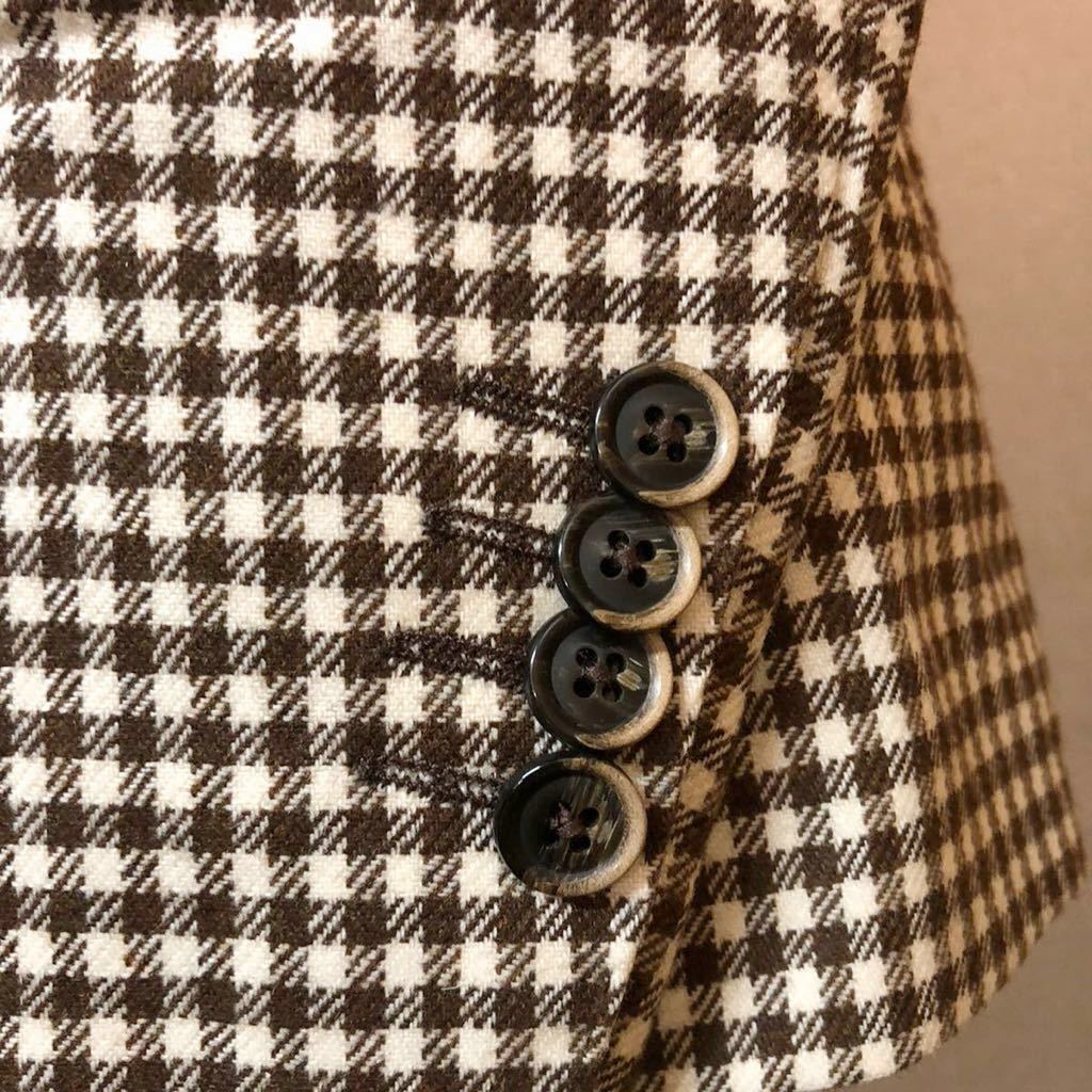 ・サイズ⇒50(日本サイズL) ・各寸法⇒着丈72cm、肩幅47cm、袖丈64cm、脇下身幅56cm ※素人採寸となります、多少の誤差はお許し下さい。 ・表地⇒毛100% ・裏地(総裏)⇒キャプラ ・色・柄⇒白・茶・チェック ・ステッチ⇒なし ・ベント⇒サイドベンツ ・袖ボタン⇒4個、キッス釦 ・台場⇒切台場 ・付属品⇒ブランドチーフ(オレンジ系) ・商品状態⇒新品(秋冬物) RD45305 | ||