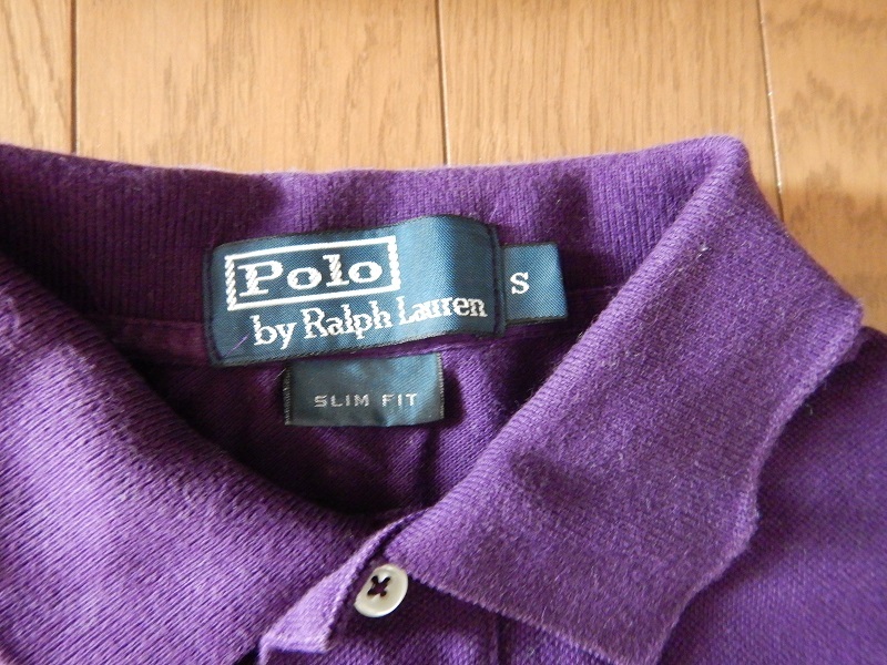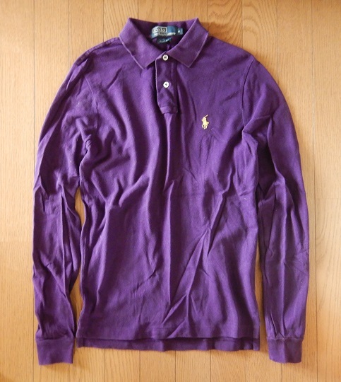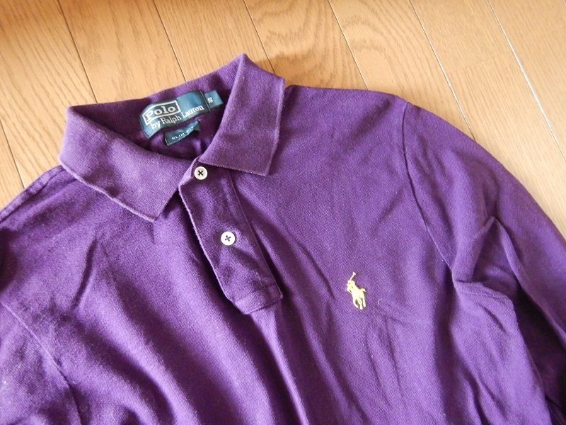 ポロラルフローレン Polo by Ralph Lauren 旧タグ ポロシャツ 長袖 紫 パープル 無地 ワンポイント S メンズ 古着 ユーズド