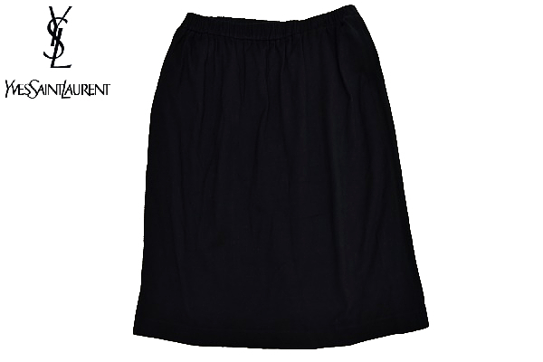 M-854★送料無料★美品★YSL YVES SAINT LAURENT イヴサンローラン★正規品 ブラック黒色 膝丈 イージースカート 9号