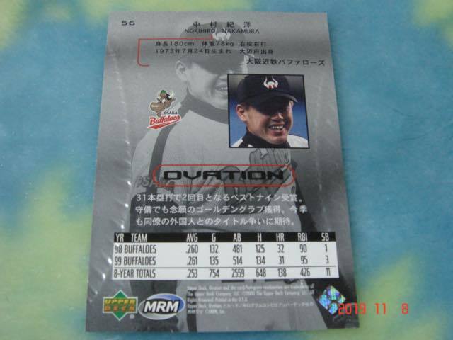 *UPPER  DECK  '2000年プロ野球カード  NO.56 (中村 紀洋/大阪 近鉄 バファローズ) 美品*