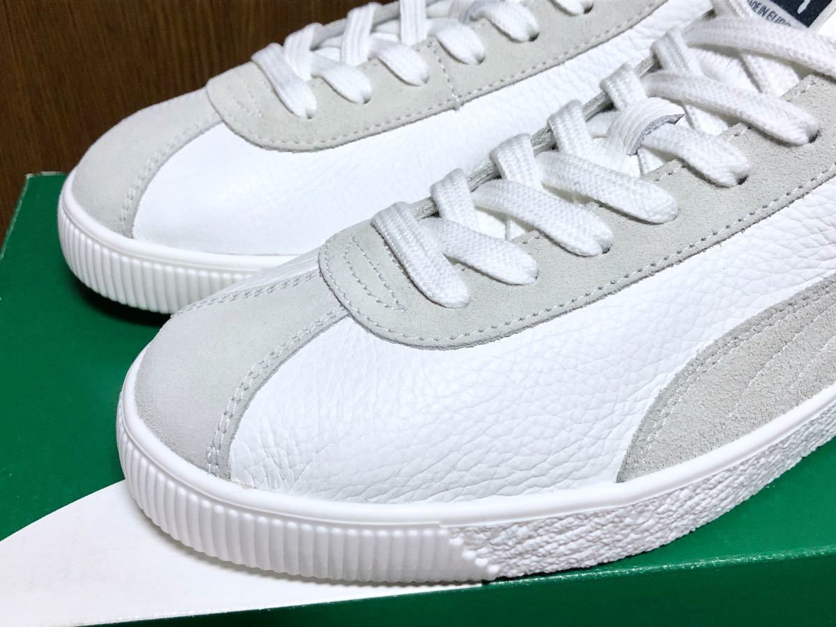 アッパーはタンブルドレザー、トゥガードとフォームストリップはスエード素材です。