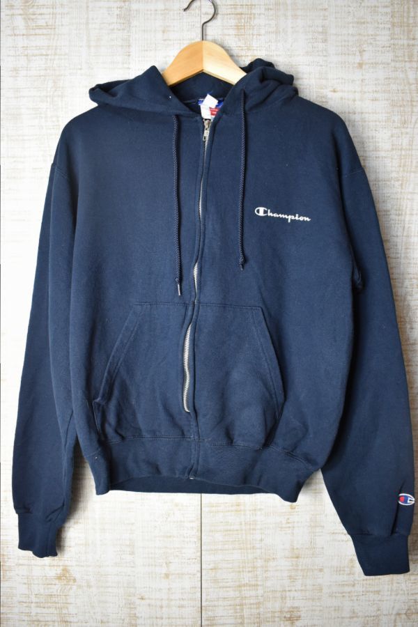 ●US USED Champion チャンピオン パーカー プリント ネイビー レディース【S】起毛