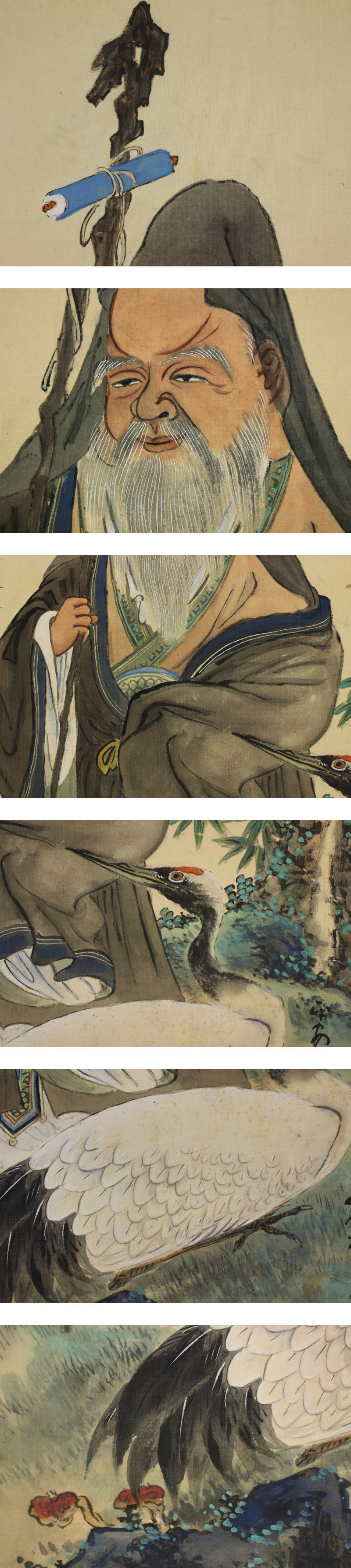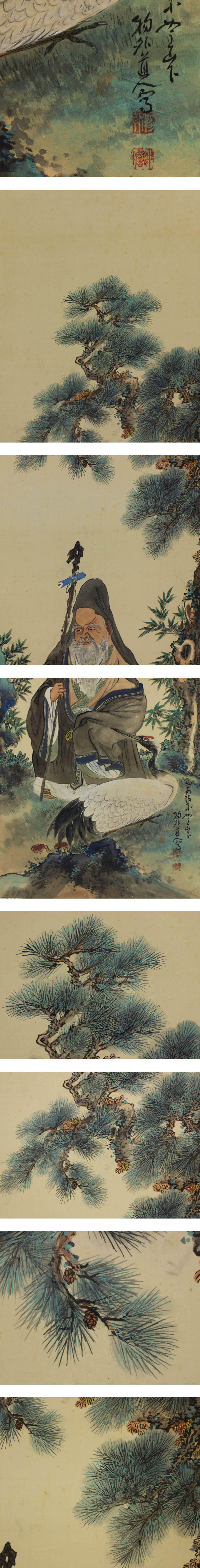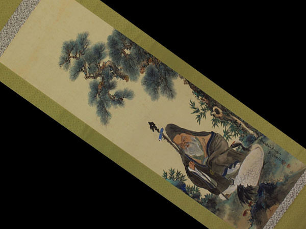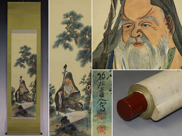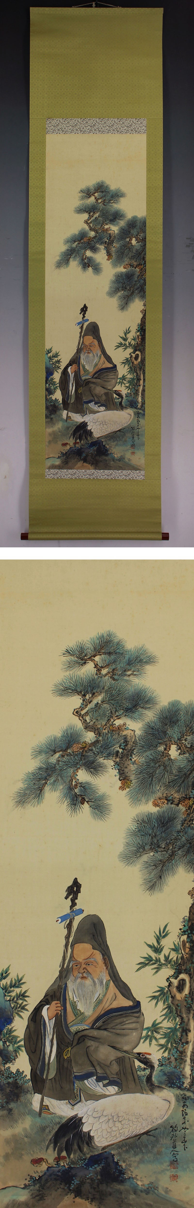 | №1909152【真作】若狭物外【南山寿老図】◆絹本◆共箱◆掛軸 | |