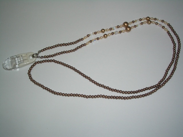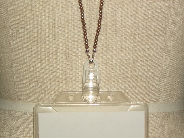ネームカード用のネックストラップと言えば細い布やヒモなどで出来たものが多いですが、このネックストラップはパール(イミテーション)やビーズ等で仕上げてりとても綺麗です。