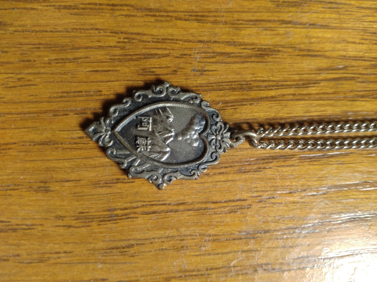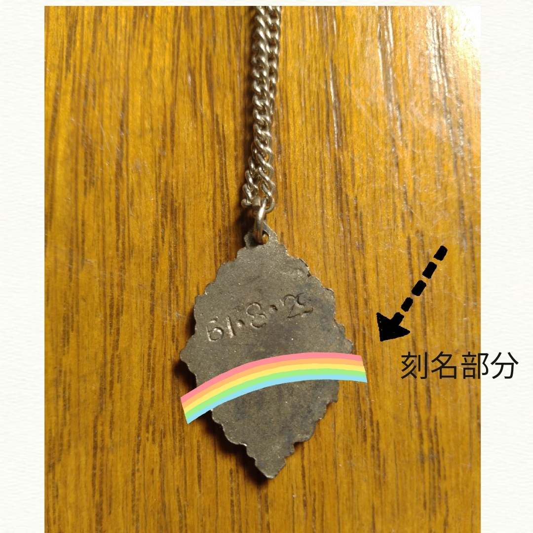 ☆送付内容☆ 中古 阿蘇 ペンダント 昭和 61.8.29 お土産 ☆メモ☆ 素材不明です。経年の変色ありです。(画像参照) 昭和61年に購入、ペンダント後ろに刻名ありです。 記念品として購入、試着のみです。 チェーンサイズ約49cmです。 | |