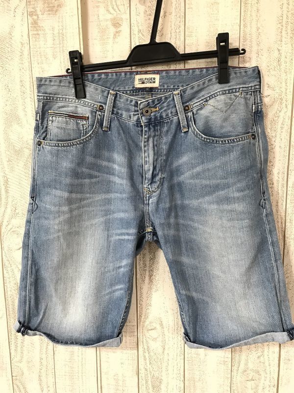 お勧め・【デニムハーフパンツ】HILFIGER DENIM ヒルフィガーデニム 32 ヴィンテージ ウォッシュ加工