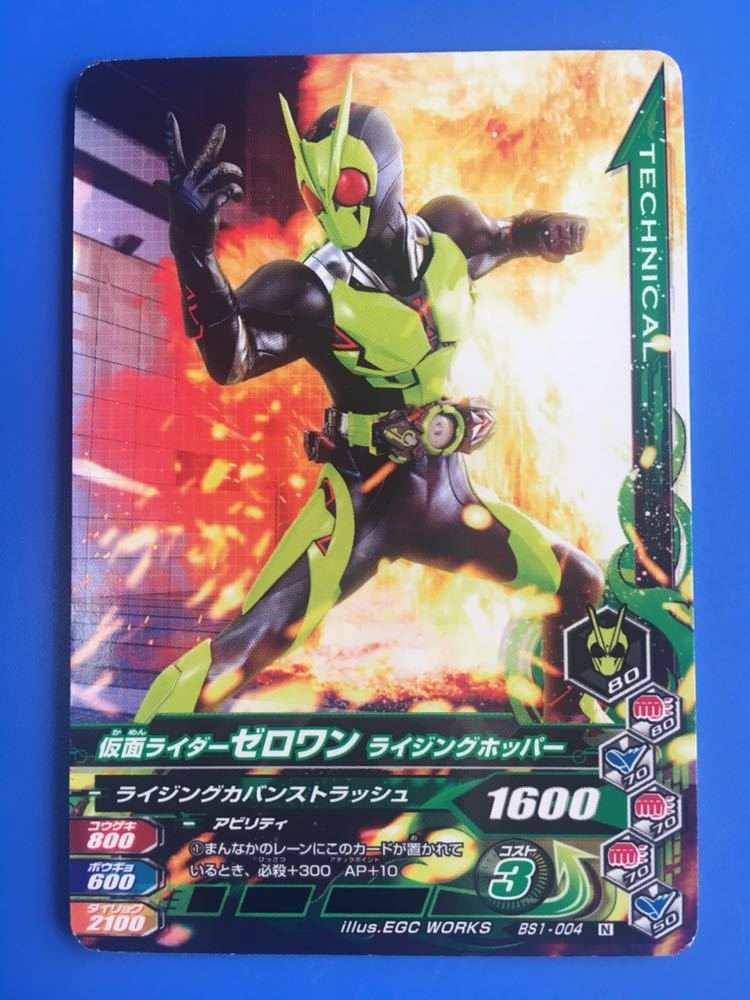 仮面ライダー、ガンバライジングの第BS1弾から、No.004《仮面ライダーゼロワン・ライジングホッパー》の登場です。発送は、普通郵便を利用します。(特にご希望のない場合)おとりまとめも可能ですが、送料に変動する場合がございます。また、送料のご請求は、自宅での計量を基準にご請求させていただいておりますので、実際の金額と差異が出る場合もございます。予めご了承ください。他にも多数出品中です。まとめてこの機会にいかがでしょうか?ご質問お待ちしております。