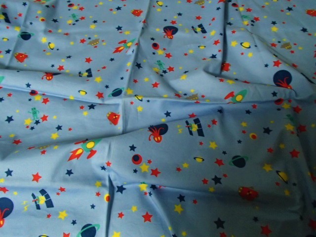 ● 生地  宇宙人 UFO ロケット 惑星 星 人工衛星  約71㎝×114㎝ 日本製