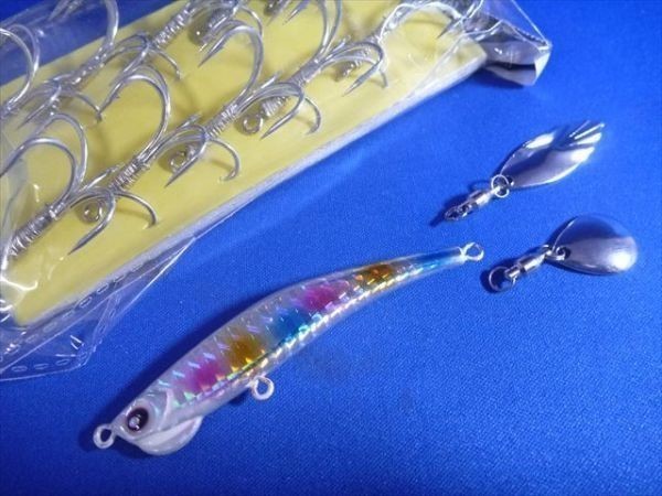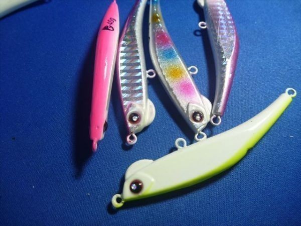 | 商品説明 | ピンクとイエローは全面、他の2つは口元が蓄光になってます。 夜光・イエロー 夜光・ピンク 夜光・シルバーピンク 夜光・コットンキャンディー メーカー交渉数値 40gです、フックをつけてちょうど40gくらいになります。 目立つようにブレードつけたり、対タチウオ用に大き目の5本バリ も別途出品しています。あわせてお試しください。 |