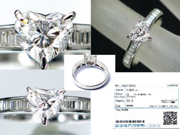 石 | 中石ダイヤモンド 1.002ct カラー : G クラリティ : SI2 ハートシェィプ カット 脇石ダイヤモンド 0.28ct | |