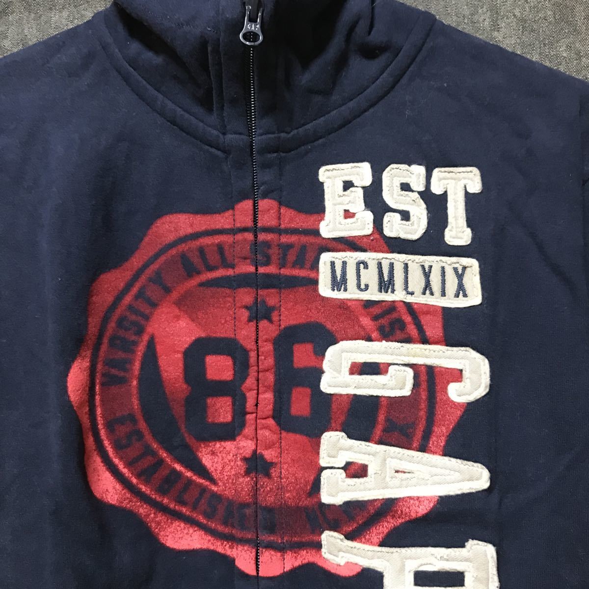 GAPのパーカーになります。薄いシミなどありますが、まだまだ着用出来ますよ。お探しの方にどうぞ。