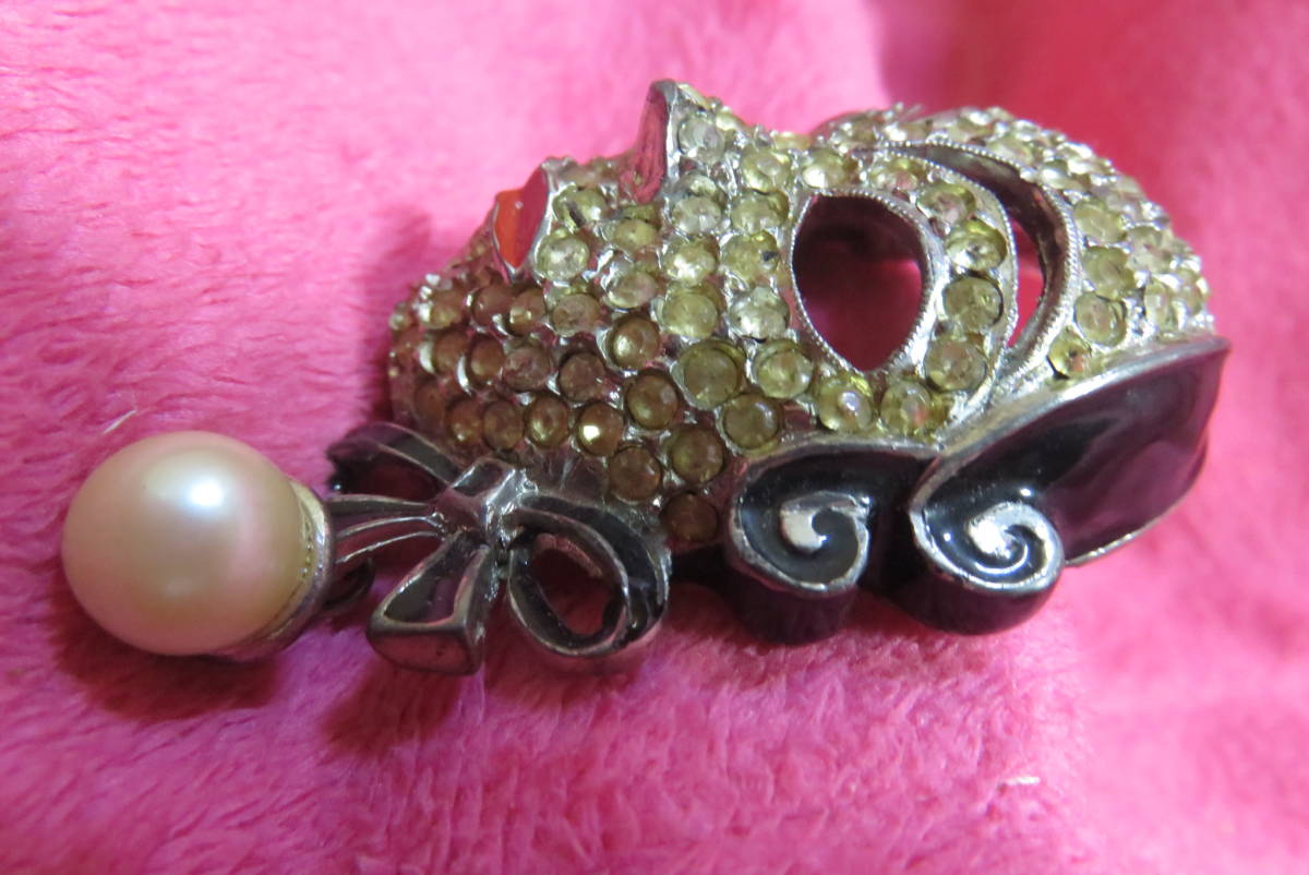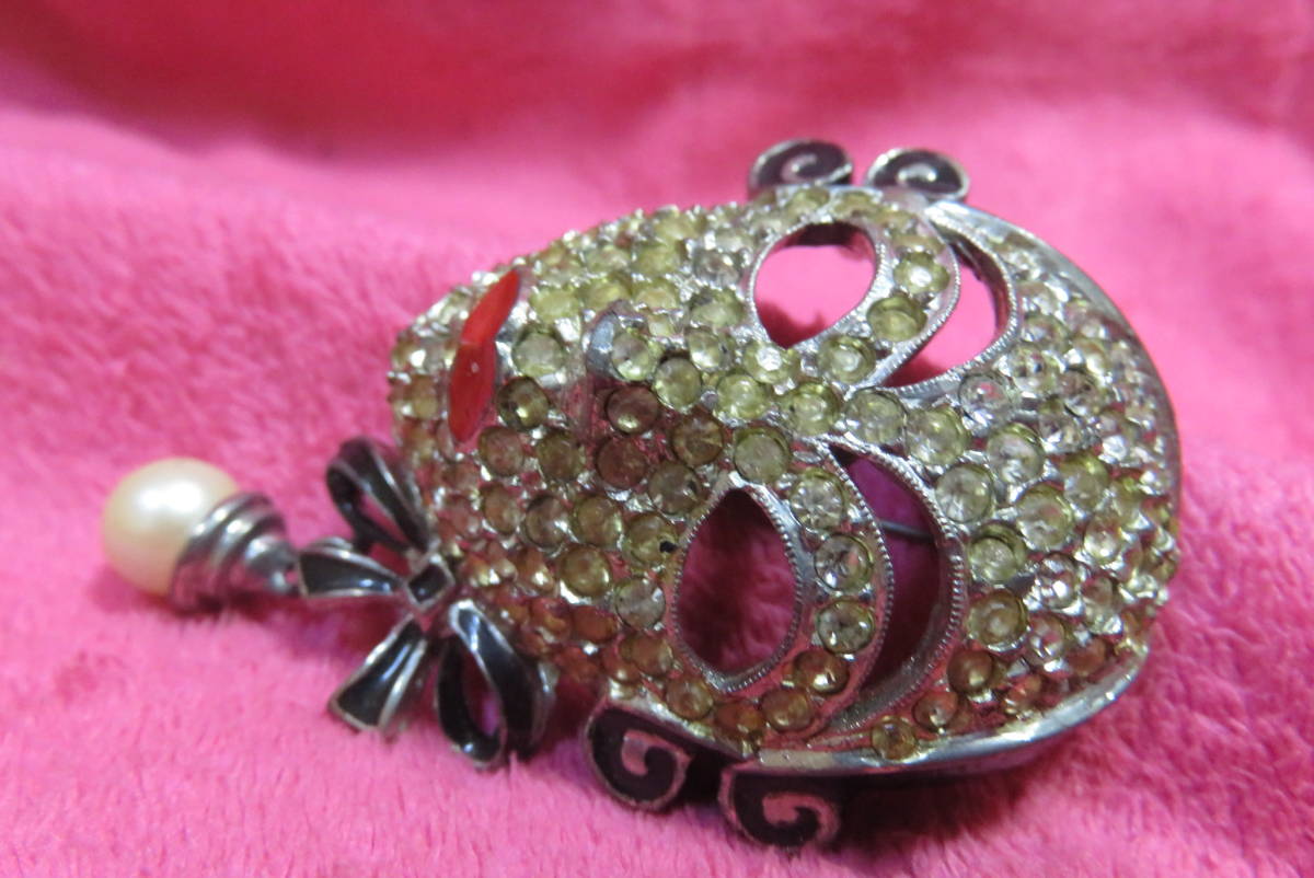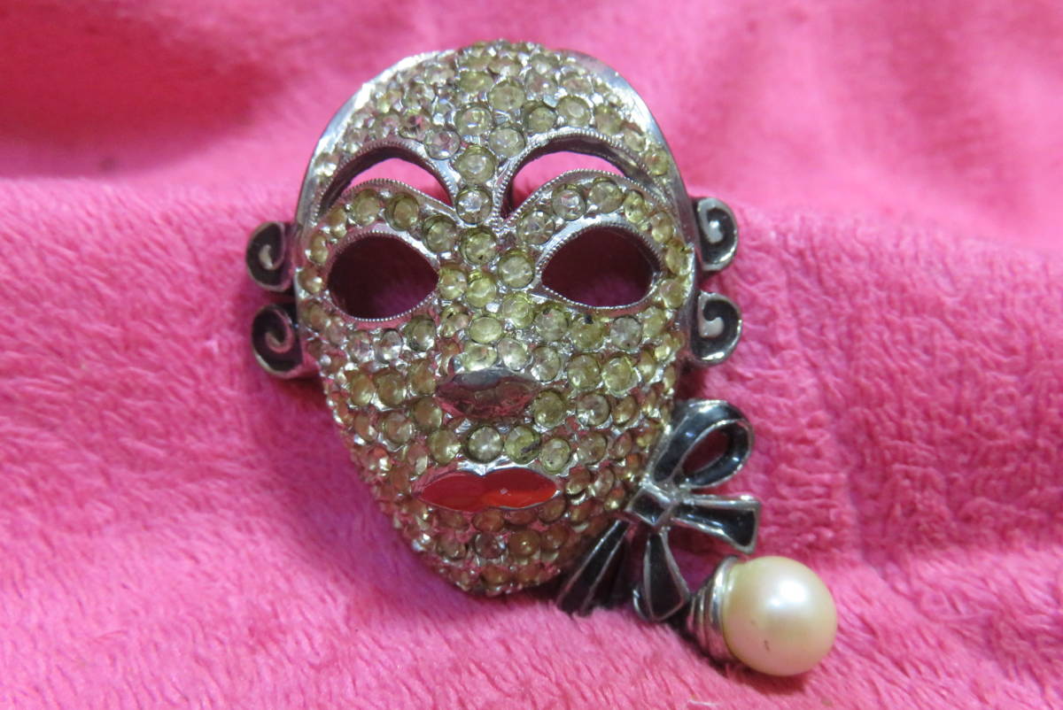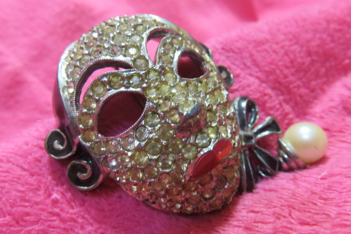J3101  ブローチ  アンティーク調  ラインストーン  仮面  パール調